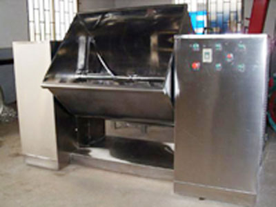 混合槽為U形體,采用不銹鋼制造,內(nèi)裝攪拌槳,它橫臥在攪拌減速器與倒料減速器上。